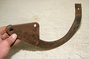A right rear bumper bracket. This bolts to the chassis and bends under the rear apron, and connects to the rear bumper. The left bumper bracket is a mirror image of this. |