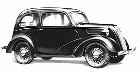 The Model Y's replacement would be the first generation that actually ressembed the Anglia that most of us are familiar with. In 1937, Dagenham released a new Ford Eight sedan, or sometimes refered to as a "7Y," still retaining the 933cc 4-cylinder engine and components of the past. A 1/4-ton van was also debuted in this configuration, first called a Fordson, later changed to Thames. The most noteable change in these vehicles came from being designed entirely in England, unlike the Model Y which was spearheaded in Dearborn, Michigan.
