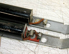 Wiring either uses one wire or two; one wire-style connector is for hot, with the frame-mount grounded (6V positive ground!). The two wire-style still only uses one lead as a hot (with the chassis-mount grounded). The other lead is for the dash indicator light. |