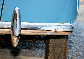 Close-up view of a "late" front bumper end, with over-rider fitted. |