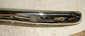Bumpers used during this era were basically a narrow single blade, usually around 2-3/4-inches wide, and expanded the overall length of the body and fenders. These can range from 52-3/8-inches long, to about 53-3/8-inches, depending on overall condition, and the amount of "bow found in their shape. There are no manufacture stamps or I.D. found on these bumpers, and new ones (NOS), are usually found wrapped in white cloth tape.