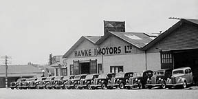 Hawke Motors Limited back in 1948. With the (then) recent release of the new Ford Prfect, this dealer really stocked up for the demand. We spot thirteen new Prefects, as well as one Ford Eight. |