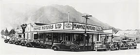 Hawke Motors again, this time back in 1939. There's a new Ford Ten (with 3-hole grille), and a Ford Eight next to it. From there on, it's all Ford V-8 sedans and coupes. |