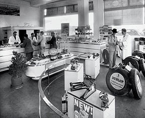 John Andrew Symond's parts room back in 1946. Love the Art Decco flare of this room, and best of all, they have NOS Anglia parts in stock! |