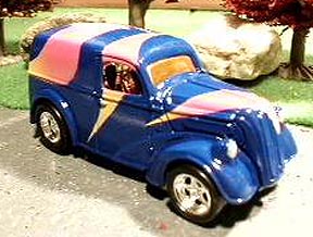 For the year 2000, Mattel Toys has released an "Anglia Panel Truck," which is a die-cast truck that is painted dark blue and carries the "Johnathan's Toy & Collectibles, Express Delivery" logo in orange and white. These models have become highly collectible and are availble on E-Bay for different amounts. People are also custom painting these as well. The following photos I saw on E-Bay, of models that have appeared in the recent past. As you can see, there are some wild versions of this cool model out there! Enjoy.....