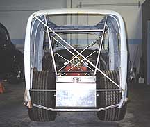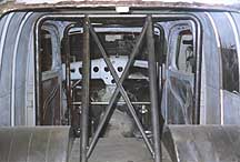 Hot Rods and Custom Stuff (Escondido, CA), began to install the roll cage, rear tubs, flooring and top insert. Notice that the extra side window has now been filled-in (finally!)