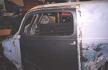 Latest shot taken last month (March 2000), shows Anglia door installation done, along with removal, and modifications to drip rails. Top has been filled-in with new metal.