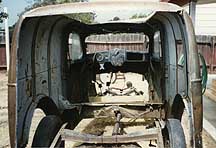 In 1996, Steve began to strip the truck of the original (rotten) wood, metal flooring and wheel wells. Note the window cut into the right-side of the body (not stock).
