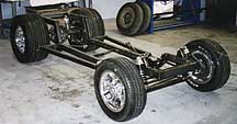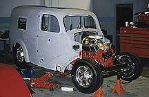With body now mounted on new chassis (BELOW), Steve's Thames is starting to look like a real street rod. Engine is a 383 Chevy, with a Turbo 350 trans, and 9-inch Ford rear.